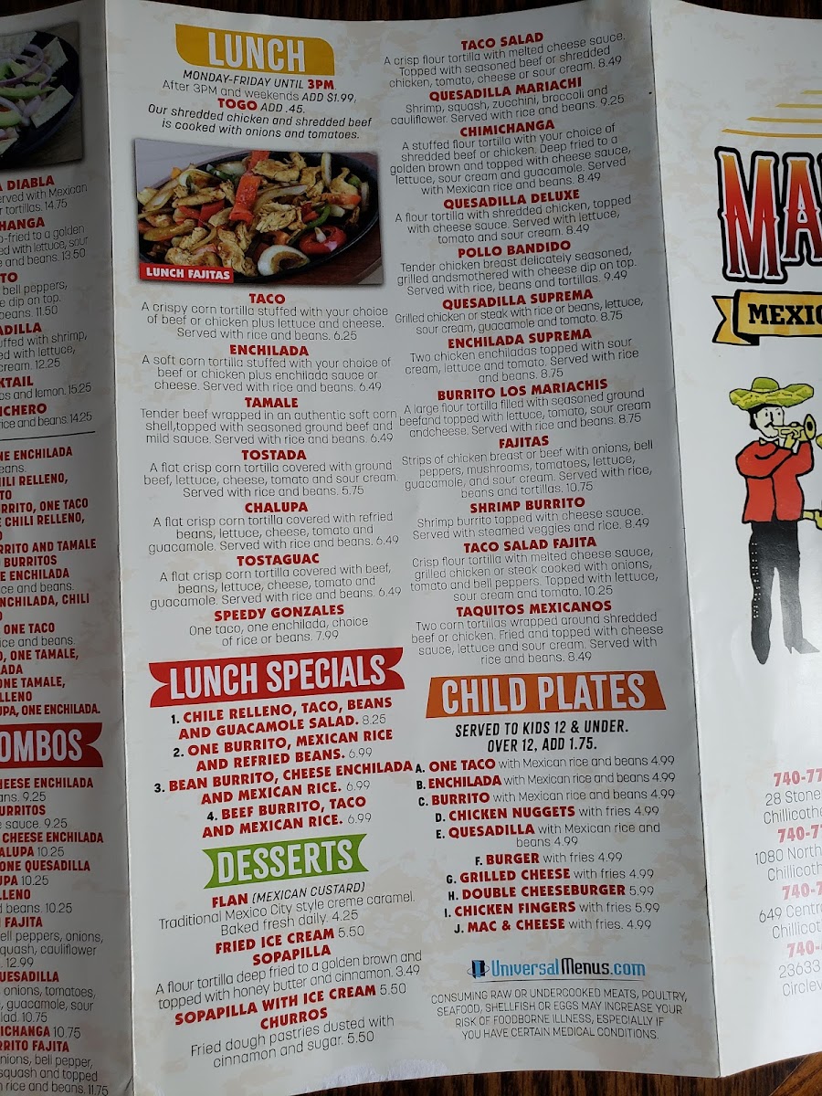 Welcome to Los Mariachis - Nelsonville, a hidden gem located at 99 Watkins St, where the flavors of Mexico come alive in every dish. The menu offers a delightful array of choices that celebrate traditional Mexican cuisine, perfect for both lunch and dinner.